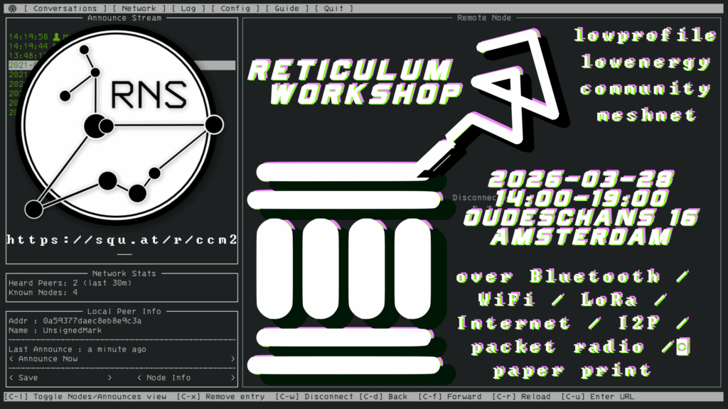 workshop Low-profile and low-energy autonomous networking with Reticulum March 2026